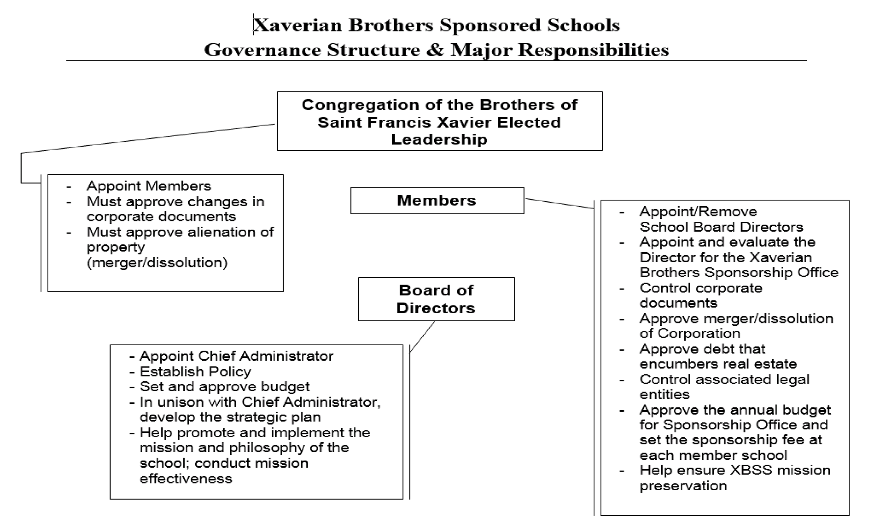 The Members are appointed by congregational leadership to promote and preserve Xaverian sponsorship. The corporate members exercise those reserved limited powers of the school corporation defined by the school’s bylaws.